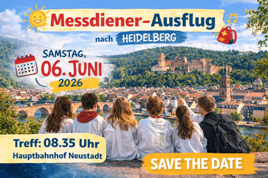Am Samstag, 06. Juni 2026, machen wir gemeinsam einen Messdiener-Ausflug nach Heidelberg.